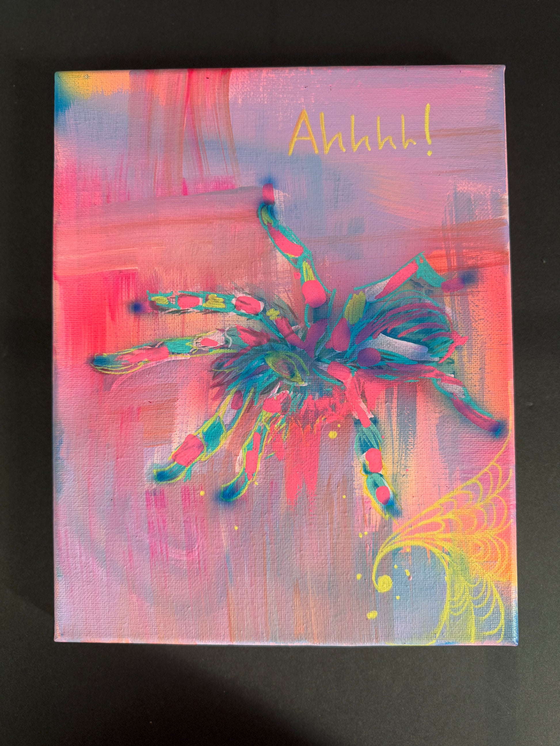 From Lizzie's mini canvas range, each canvas is 1 of 1, painted with posca pens, airsbrush and a lacquer to finish off.