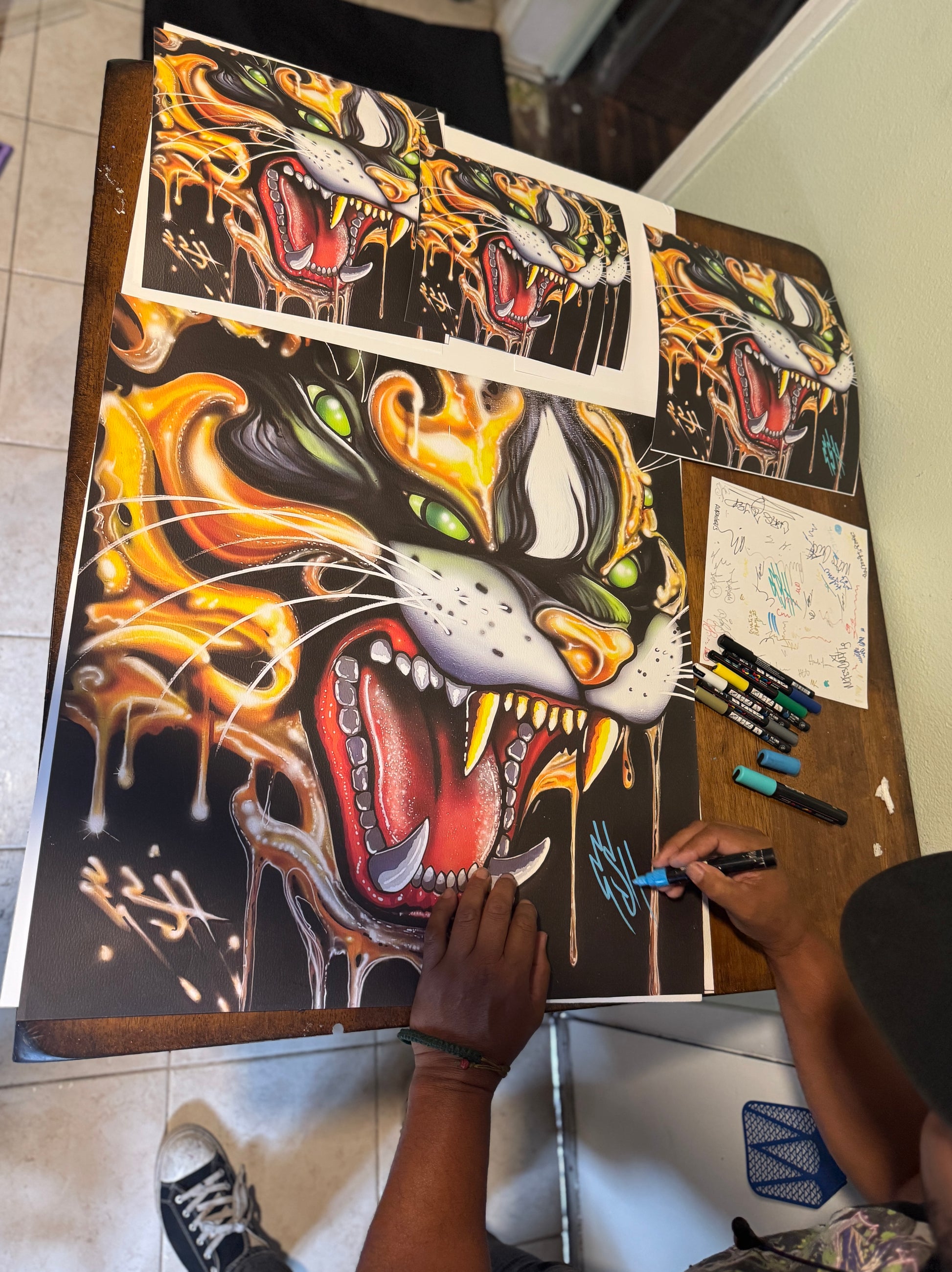 When the collective launched, we produced a specially curated print run crafted in collaboration with our talented artists, proudly made in St Petersburg, Florida by ACE High Printing on premium 260 gsm acid free paper and printed on a state-of-the-art wide format eco solvent machine. Find your perfect size, all prints are signed by the artist.