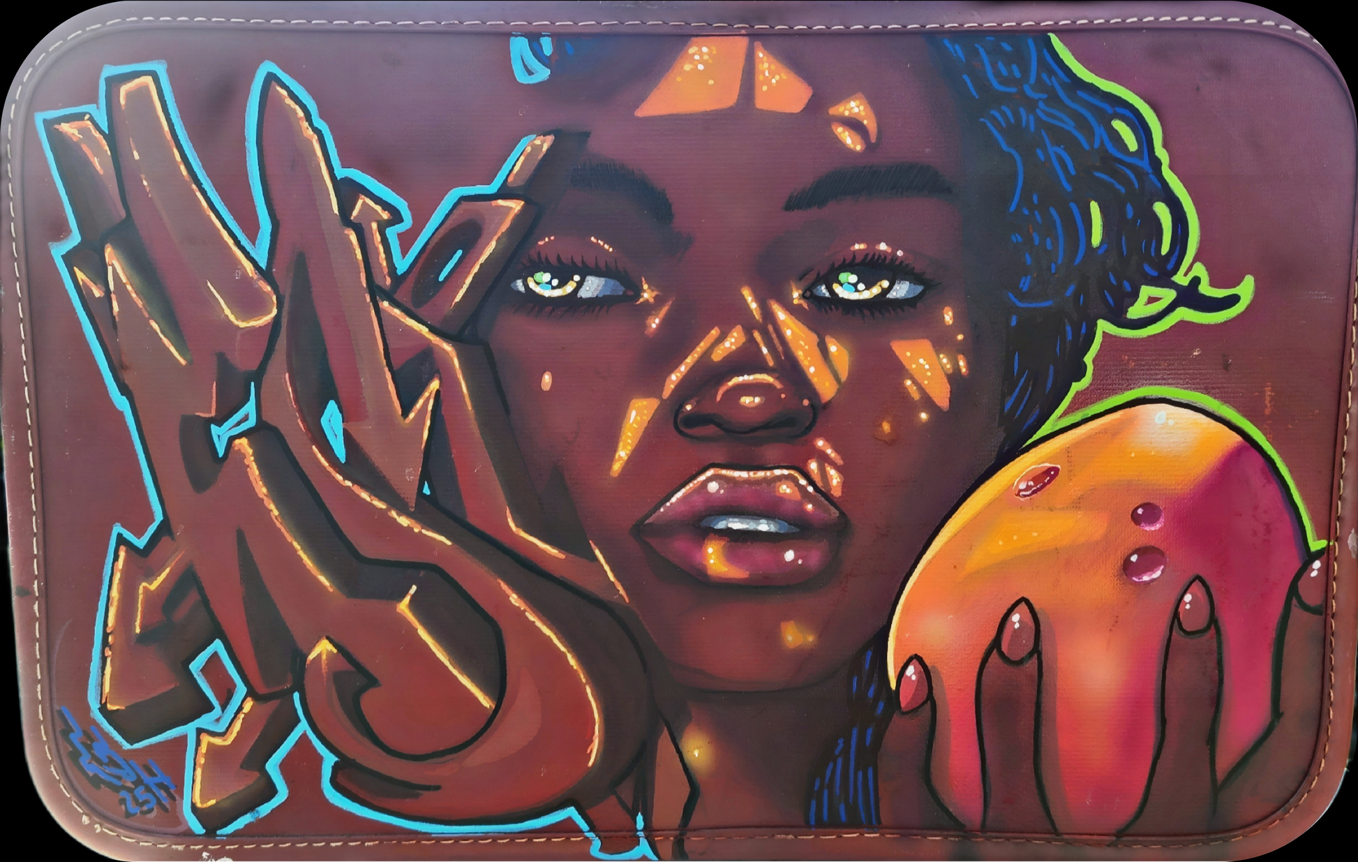 In her hands, the king of fruits, the fruit of kings—ripe, sun-warmed, waiting to be savored.
