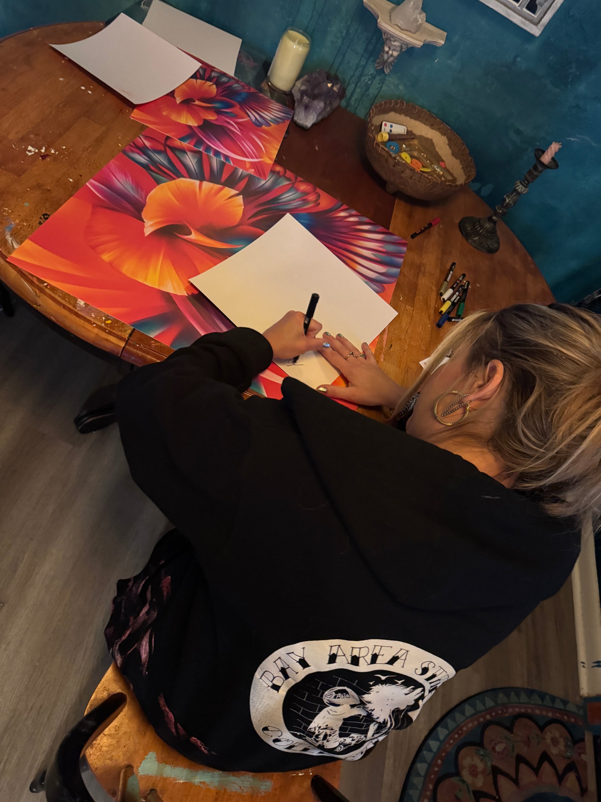 Print of original Dreamweaver artwork. When the collective launched, we produced a specially curated print run crafted in collaboration with our talented artists, proudly made in St Petersburg, Florida by ACE High Printing on premium 260 gsm acid free paper and printed on a state-of-the-art wide format eco solvent machine. Find your perfect size, all prints are signed by the artist.